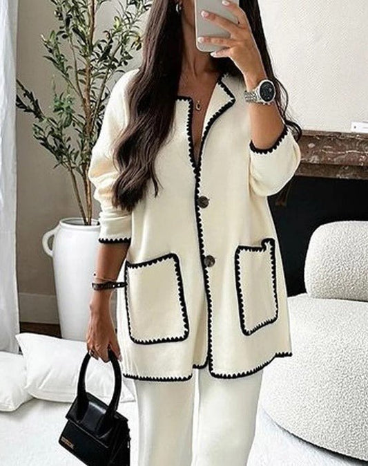 Ava™ I Tweedelige jas met randversiering en casual broek